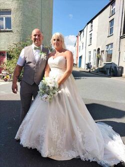 captionStory from Jam Press (Budget Wedding) Pictured: Janes wedding dress. Savvy bride ‘felt like a princess’ at £3,000 budget wedding A savvy couple has shared how they managed to get hitched while sticking to a tight budget. Jane and Carl Pennington tied the knot on Saturday (10 August) in front of 120 guests and say their day was perfect. But incredibly, they didn’t have to fork out tens of thousands or sacrifice any of the usual frills that come with a wedding – managing to spend under £3,000. Now, the newlyweds have shared how they pulled off the budget-friendly big day – with DIY décor, and free food and entertainment. “I felt like a princess,” 51-year-old Jane, a fitness instructor from Dalton-in-Furness, Cumbria, told What’s The Jam. “We spent just under £2,950 [in total]– that included a hotel stay for my husband the night before the wedding, and for us on the wedding night.” The duo bagged a free venue by having the ceremony at their local church, as well as the reception following it. Luckily, the church choir offered to perform live for them for free – saving them hundreds. Instead of blowing their budget on food and drink, the savvy couple asked people to bring their own food in lieu of any gifts – something the community rallied together for. Jane said: “We didn’t have a sit-down meal, we just had a buffet. “One of my bridesmaids and her husband have got a catering trade and they set aside a list of ideas for people to bring and put their names against what they were going to bring. “We got married at 2pm, opened the buffet at 5pm, and just kept topping it up – a team of people at the church did that – and people could help themselves. “Everyone supplied their own drinks. “We did supply a welcome drink too. “The cake was made by family from church. “She makes a lot of cakes and she’s really good. “She made a four-tier wedding cake, so that was her gift to us. “It was a four-tier cake for 120 guests.” To ensure a record of their gorgeous day, they paid a photographer £250, and filmed a free video livestream for family members who couldn’t attend. Jane added: “We just had to pay for the marriage itself, which was £70, so our pastor did it for nothing for us because he just wanted us to be married.” The bride also shopped around to ensure she scored the best bargains for things including bridalwear and décor. She said: “I got the wedding dress at Wed4less outlet in Stockport and I paid £850 for my dress. “It was definitely a steal and the bridesmaids’ dresses were £140 each. “The bridesmaids bought their own shoes so it was something they could wear again. “I made all my own flowers and my own bouquet and corsages. “I did all the decorations - I bought them from [budget online shop] Temu - and spent £350 for all the decor and flowers. “I did it all myself, with the help of the bridesmaids. “That [included] all the flowers for my veil, my headpieces that the bridesmaids wore, and various wedding signs. “We also had a table with pictures of people that had passed, and a memory sign on it from Temu.” As for hair and makeup, Jane paid £40 for her and her daughter to have their makeup done, while the bridesmaids paid £30 each for their hair, and covered Jane’s as a treat. For Carl and his best men’s suits, they paid £400 for five – using a deal online purchasing three suits to get a fourth free. When speaking of the average cost of a wedding Jane said: “It’s crazy. You could get a lot more. “I think people getting married, spending that kind of money, are doing it for the show of it. It’s just about what it looks like to everyone else. “It’s just one day at the end of the day. “All we wanted was to be married in front of god – it wasn’t done for show.” To other people, Jane advised: “Don’t stress about the little things. “Enjoy your day and wear what you want.” ENDS