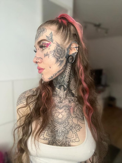 captionStory from Jam Press (50 Tattoos) Pictured: Lucy Krasota with her first facial tattoo. 'I'm 20 years old but already have over 50 tattoos – my parents don't approve and strangers stare but I don't care' A woman with more than 50 tattoos has told how her parents don't approve and people stare at her in the street. But 20-year-old Lucy Krasota doesn’t care and was dreaming of body mods when she was a child. At the age of 10 she already had stretchers in her ears and colourful hair, and by 13, she was thinking about silicone breasts and tattoos on her eyelids and fingers. When she finally turned 18, she rushed to get her first inking – a simple hand stamp – and it just made her want more and more. “I followed it up with splitting my tongue, tattooing my face and getting breast implants,” Lucy, a content creator from Germany, told What's The Jam “I often watched videos of people who have a split tongue and realised I really wanted that for my transformation. “I didn’t think twice and got an appointment for the next month.” Lucy now has over 50 tattoos as well as nine piercings. She said: “I also have stretched earlobes and more tattoos to come. “I want to be completely tattooed until there are no more vacancies. “So far I have three modifications but there are more to come. “I have the split tongue and my silicone breasts. “I don’t want to reveal the third.” However, her ever-changing look hasn’t come without opinions from family and friends. She said: “My family had a very big problem with my change. “There was a lot of discussion and argument. “But I don’t care that people have a problem with it. “The situation has calmed down.” The body modifications also impact Lucy’s daily life, but she takes no notice and claims it helps her mentally. She said: “I’m constantly stared at in public, but it’s usually not a problem. “There are days when I really don’t want it, but I have to get through it. “Alos, since my change I have received a lot of lovely compliments on the street. “Only once has someone told me I was ugly. “Changing my body helps a lot with my depression. It is the best therapy for me.” To anyone considering similar body modifications, she said: “My advice is to think why you want it and is it the thing that will make you happy? “You should only do it to please yourself and if you want to look badass!” Lucy shares content with her 2,210 Instagram followers, posting revealing pics of her tattoos. A recent black and white pose, simply captioned ‘Black’, has received over 6,000 views, hundreds of likes and plenty of comments from fans. Morph said: “In a room full of art I'd still look at you.” Someone else commented: “Turned out great, keep up the good work of art. I'm curious to see how it goes.” Ed added: “Beautiful.” Burak wrote: “Tattoos man.” ENDS EDITOR’S NOTES: Video Usage Licence: (NON-EXCLUSIVE) We have obtained a non-exclusive licence from the copyright holder. A copy of the licence is available on request. Video Restrictions: None.