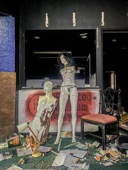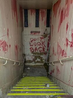 captionStory from Jam Press (Abandoned Horror Museum) Pictured: Inside the abandoned horror museum. Inside abandoned horror museum where people feel like they’re ‘being watched' An urban explorer has delved into a horror museum forgotten-in-time – and says she felt like someone was “watching” her. Chloe Urbex, as she’s known online, found the abandoned site “super eerie”. The 23-year-old has made some chilling discoveries before, such as in an abandoned mortuary, but this is her “creepiest” adventure to date. “As I was exploring the place alone, I felt like I was being watched,” Chloe, from England, told What’s The Jam. “The whole place was super eerie compared to most that I have explored. “When I first entered, I just saw a mannequin staring right back at me. “The most terrifying part was going down the dark corridors on my own.” Inside, she found old posters; one advertising a ghost hunt event and an old ‘wanted for murder’ poster seeking the infamous Jack the Ripper. Some of the rooms contained worn looking household furniture, which added to the overall uneasy creepiness, such as a bed and a dressing table. One stairwell appeared to have been decorated to look as if blood had been splattered on the walls. Right before the steps turned a corner, a message that had been painted to look as if it were written in blood read: “Don’t look back”. And one of the doors even had a pentagram carved into it. Before it was a museum, the site was once a cinema – but now, there’s only a shell of what used to be. She added: “Most of the building is an empty cinema room, but there aren’t any seats or a screen.” ENDS